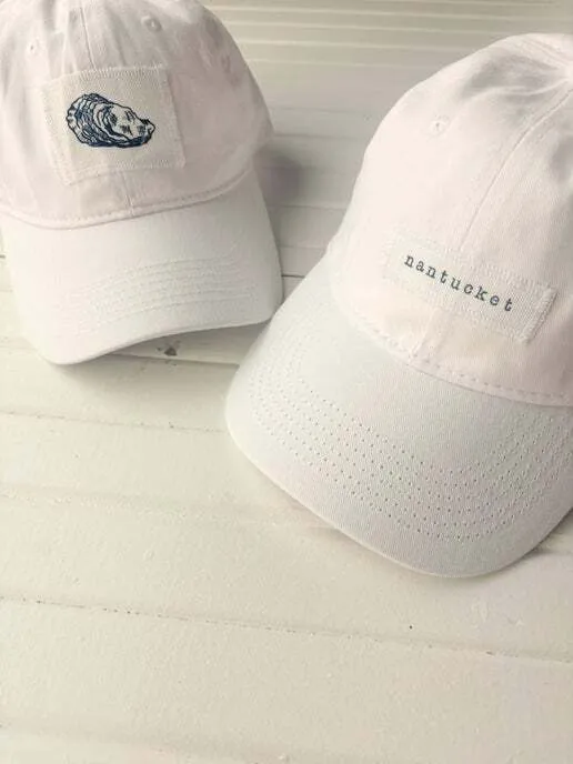 Introducing our White Brushed Twill Low Profile Ball Cap, a stylish and comfortable accessory perfect for any casual outing. Crafted from 100% cotton twill, this 6-panel unstructured cap offers a relaxed fit, making it an ideal choice for all-day wear. Featuring a self-fabric closure with a D-ring slider, tuck-in strap, and a low profile, this cap offers an adjustable fit for every wearer. The custom white canvas applique is hand-stamped in marine blue or black with your choice of text in a relaxed, lowercase vintage typewriter font. Whether it's your town name, favorite beach, or a cherished vacation spot, this cap makes for a personalized memento that evokes memories of special places. The applique is meticulously finished with serged edges and securely sewn onto the hat, ensuring durability and a polished look. Whether you're hitting the beach or strolling through the city, this anchor ball cap brings a relaxed touch to your everyday wardrobe. Other motifs available.
