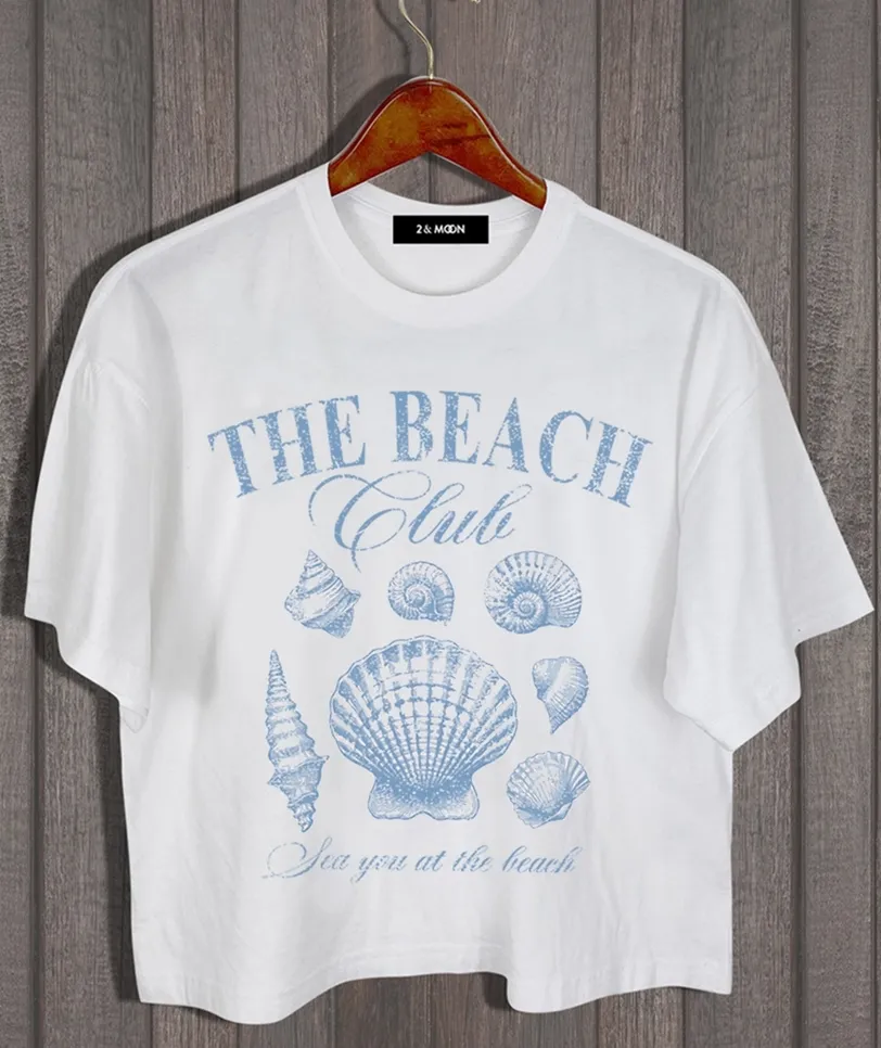 Vintage-style tee in Ivory color, with a soft faded print featuring seashell illustrations and the phrase "Sea you at the beach" in elegant script.